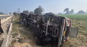 हाथरस।सिकंदराराऊ थाना क्षेत्र के गांव फरीदाबाद के निकट एक ट्रक स्टेयरिंग फेल होने से खाई में जा पलटा। हादसा बीती रात करीब 11 बजे हुआ, जब ट्रक एटा से दिल्ली की ओर जा रहा था।