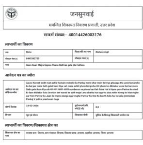 पीड़िता ने IGRS (Integrated Grievance Redressal System) पर जाकर एक आधिकारिक शिकायत दर्ज कराई है और आरोपी के खिलाफ सख्त कानूनी कार्यवाही की माँग की है।