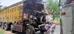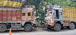 सासनी-आगरा मार्ग पर हनुमान चौकी के समीप दो ट्रकों की भीषण भिड़ंत, टला बड़ा हादसा